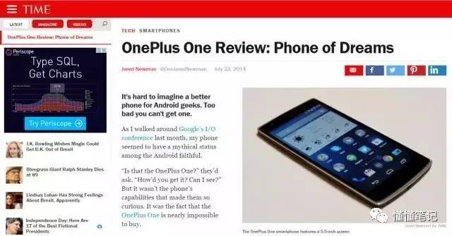外媒曾称赞一加1为“梦幻手机”