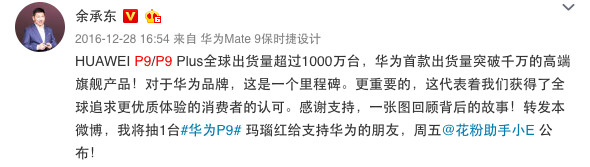华为数据显示,P9是华为历史上首款销量超过一千万台的高端智能手机,而在2017年4月份举办的华为分析师大会上,华为宣布P9的销量达到了1200万部,成为了华为历史上旗舰销售之最。而华为Mate8的具体销量华为方面则并没有公布,但若是以P9在销量上的突破一千万部华为的欣喜来看,更为高端一点的的Mate8,如果达到了1000万部,华为应该是不会低调的。