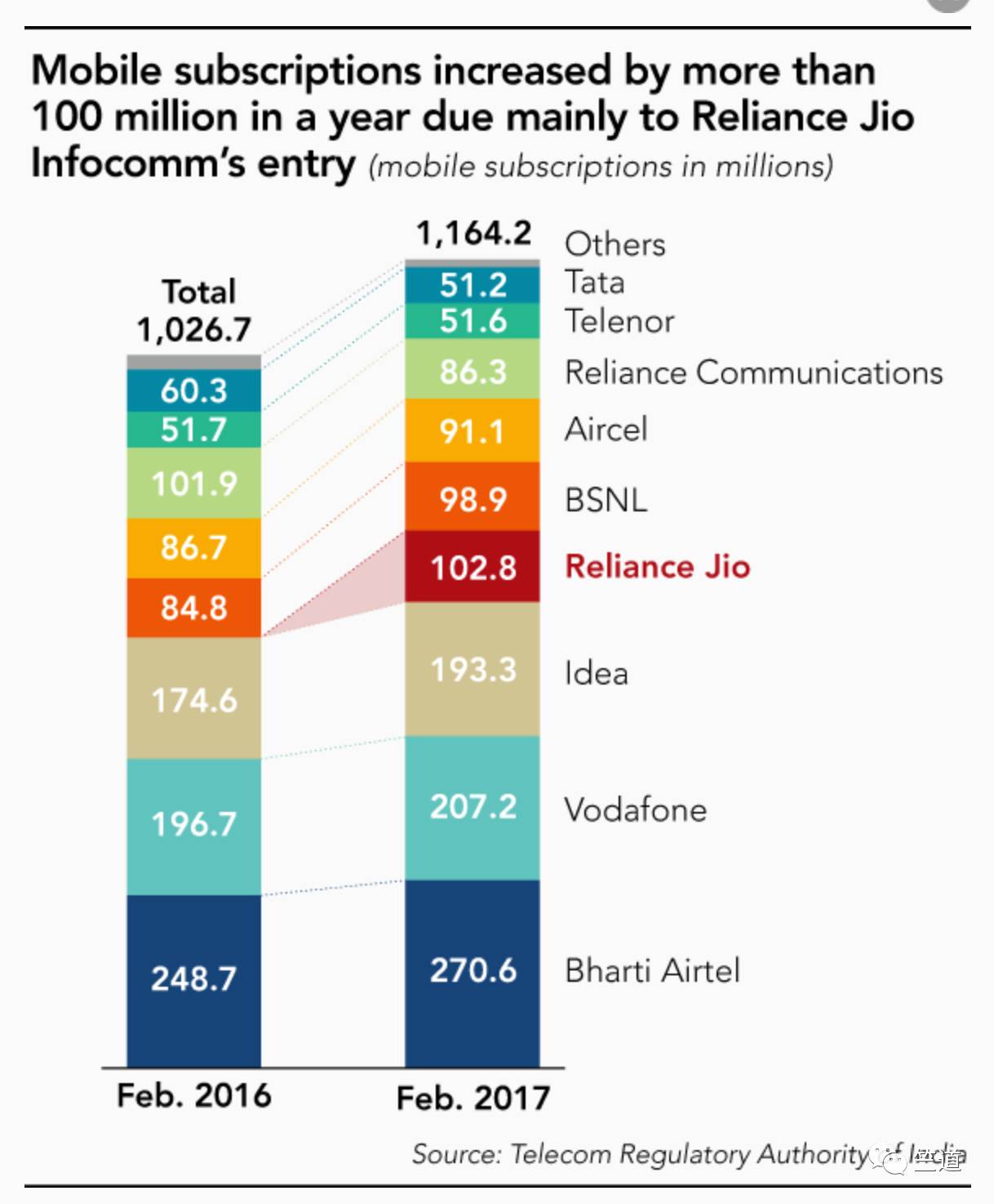为了与Jio对抗,Airtel、Vodafone、Idea等印度电信巨头在印度掀起价格大战,纷纷提速降价,竞争扩大到了印度全境。
