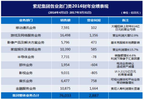 但反观索尼音乐业务就不太一样了,我们从索尼在今年四月公布的2016年财报可以看出,音乐业务的收益是除去游戏及网络服务业务和金融服务业务以外创造营业利润最多的一项业务。
