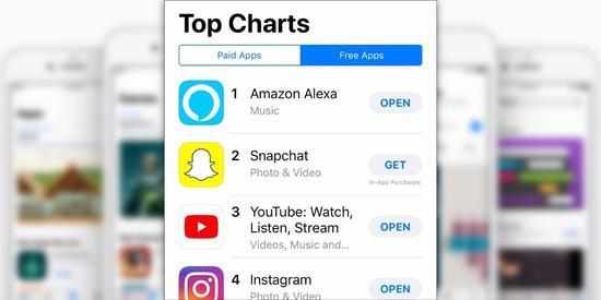 当然,在这段时间里,苹果最大的销售额将来自于iPhone的大量购买,无论是新的iPhone 8和iPhone X,还是更老的打折机型。通过查看应用店的趋势部分,可以看到iOS设备应用下载量激增。像Snapchat、WhatsApp、YouTube和Facebook这样的主要应用通常不会出现在热门搜索词中。然而,随着新一代iOS用户的迅速崛起,他们将会寻找所有的基本应用程序,这意味着它们有望再次成为热门搜索词。