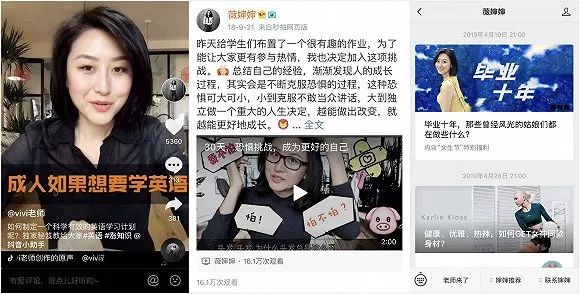 西安的微博Vlog博主薇婶婶也有两个分身。“薇婶婶”在微博和微信公众号上做生活方式内容、“薇薇老师”在抖音上分享英语学习以及博物馆知识。