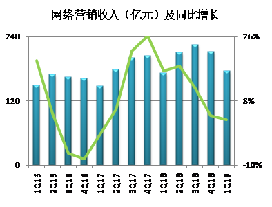 2016年Q1至2019年Q1,网络营销单季度同比增长的中位数为5.6%,按年算的复合增速也就15.5%,这种成长性可以说是非常一般。