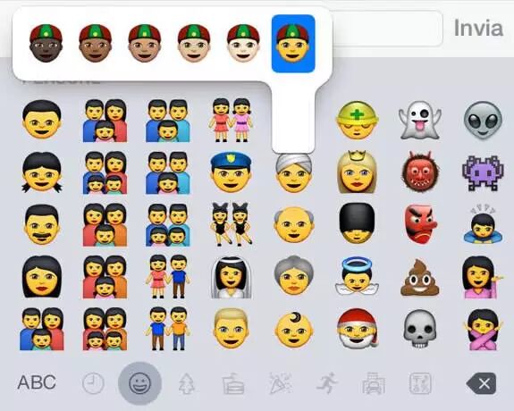 苹果感受到了巨大的压力,从去年开始着手解决这个问题。于是在iOS 8.3 里,所有人物图标都将有由浅到深6种不同的肤色。