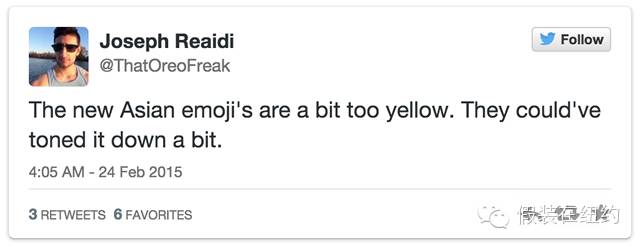 首先是不少亚裔在推特上吐槽,凭什么用这样屎黄屎黄的颜色代表我们黄种人啊?设计师你给我来中国找一个长这样的人出来?以为我们都长得和芝麻街似的?