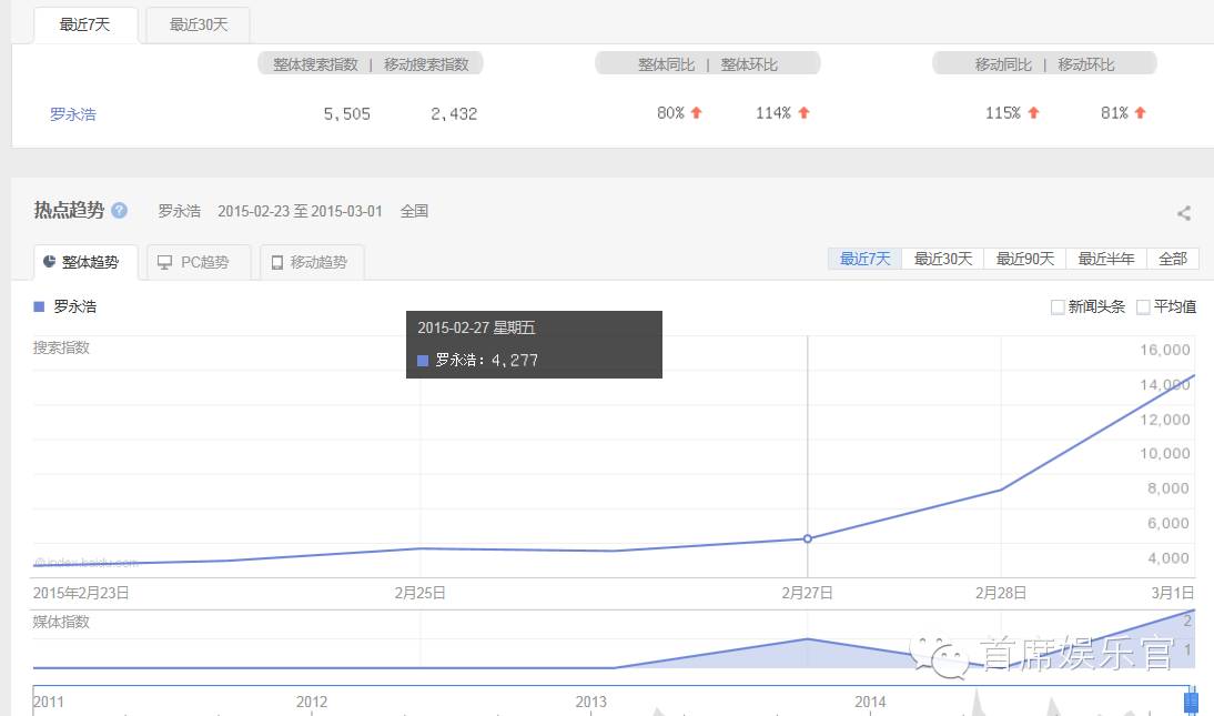 好一个“小我的表面”!但从百度指数来看,罗永浩在《穹顶之下》曝光后,人气指数急剧上升。