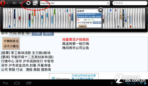 直接狂点新标签页,直到标签页达到了显示限制99个。笔者所测试的平板拥有A9核心双核,1GBDDR3大内存,在多任务处理上和多网页加载上起到了很大的决定因数,四核ARMMali-400MP独立显示芯片,能对每一个标签页进行GPU渲染,使得每一个标签页中的内容显示清晰,广告、FLASH动画显示完美,放大、缩小、拖动页面顺畅。同启100个网页之后,还能播放在线视频,不过确实是有点卡顿了。