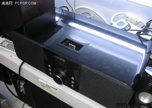 在MD331的上部带有一个iPod插槽,可以适用于各种型号的iPod播放器,在声音单元使用上,MD331采用了5.25寸低音单元+两个2寸全频带单元的组合,低音单元朝地增压设计,全频带单元前方超向,带有防尘挡板。声音效果还是很不错的。而且有别于一般iPod音箱侧重中高频而低频嬴弱,MD331三个频段比较均衡,低频也很强悍。