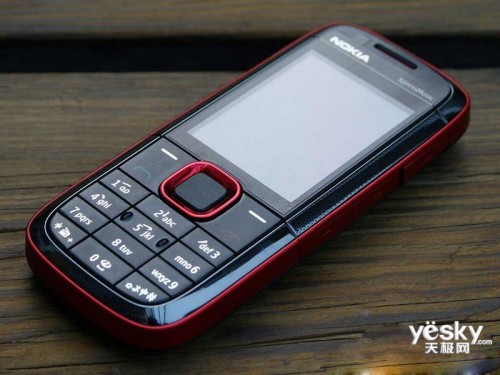 诺基亚5130采用了经典的直板造型,有红、蓝两种颜色可选,机身尺寸:107.5×46.7×14.8mm,重88g,轻巧方便,拿在手上不会有沉重的感觉。5130主屏为2寸的26W色液晶屏,分辨率为经典的320×240,屏幕左边为诺基亚音乐手机经典的音乐播放控制按键。