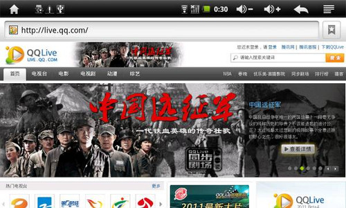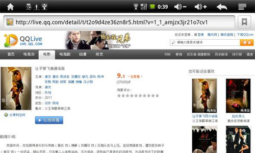 用自带的网页浏览器打开QQLive非常快,5秒就打开了,找了一部现在还算比较新的电影观看,加载速度也很快,这部电影有大约2个多小时,播放从头到尾都非常流畅,无任何缓冲和卡顿现象,而且这里的片源都是DVD版的,对网络的稳定性要求很高,看来播放在线视频这项测试也完美通过了。