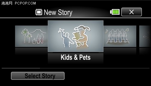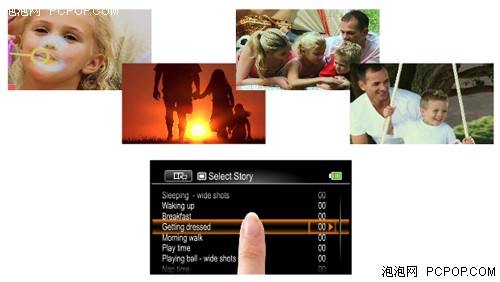 其中,情节生成器在数码摄像机内预设了5个情节主题以及相关该主题推荐的拍摄场景提纲,可以让用户拍摄的内容不再是无序的记录,而是创作出具有故事情节的“影片”。用户只需在拍摄前选择主题和剧情场景,并按照内容设定进行拍摄,即可获得具有影片效果的视频。另外,用户也可根据自己的需求,设置新的情节主题和拍摄内容。