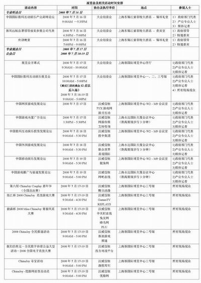 为方便各界人士安排ChinaJoy期间的活动时间表,大会组委会终于首度公布了大会日程安排的最新版本:
