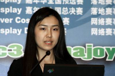 大型活动为玩家带来全新概念本届展览会的大型活动方面也推出了诸多的全新概念: Cosplay活动的全新“C3超级联赛”;张江杯2008 ChinaJoy 竞技游戏大赛的“网吧联赛”层层选拔机制,优胜选手将有机会同Sky并肩作战;Miss ChinaJoy青春风采大赛更是联合Cnet旗下Zol、兔友网、蜂鸟网等优质资源,结合ChinaJoy在游戏产业和Cnet旗下企业在IT及时尚模特行业的优势,为现场带来更加时尚ShowGirl;为真实的反映玩家眼中的ChinaJoy,组委会联合新浪游戏频道举办“2008 ChinaJoy全民报道”,让玩家评述他们眼中的ChinaJoy.负责ChinaJoy展会大型活动的高文爽小姐则重点介绍了组委会针对动漫产业推广所设立的“C3超级联赛”机制。